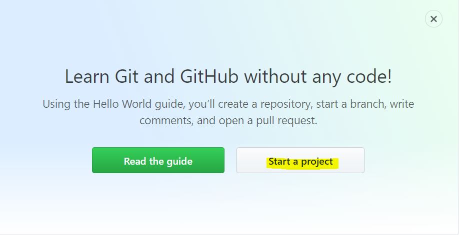 화면 중앙의 [Start a Project]를 눌러 저장소를 생성한다.