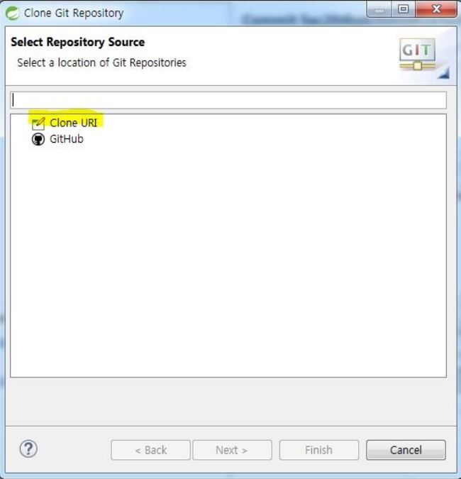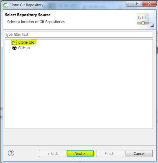 Clone Git Repository 창에서 Clone URI를 선택한다.