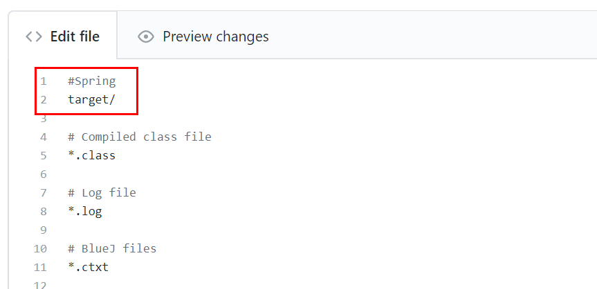 리포지토리에서 버전 관리할 때 배제할 파일을 설정할 수 있음. java 코드를 작성할 경우 java를 선택한다.