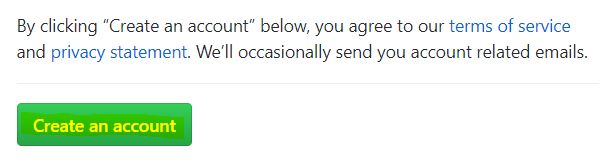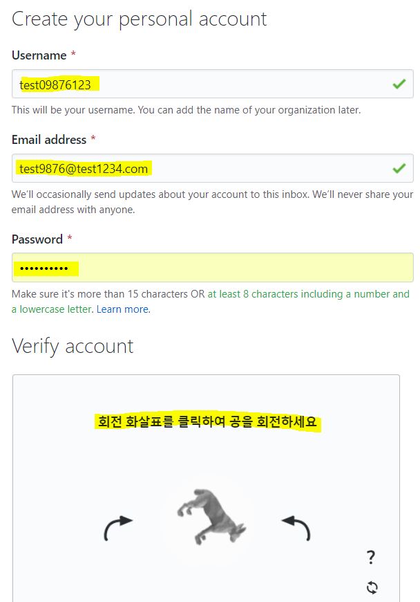 메뉴에서 [Sign up]를 클릭했을 경우 아래 화면이 보여지고 Username, Email, Password를 작성하고 Verify account를 수행하고 하단의 [Create an account]를 눌러 가입한다.