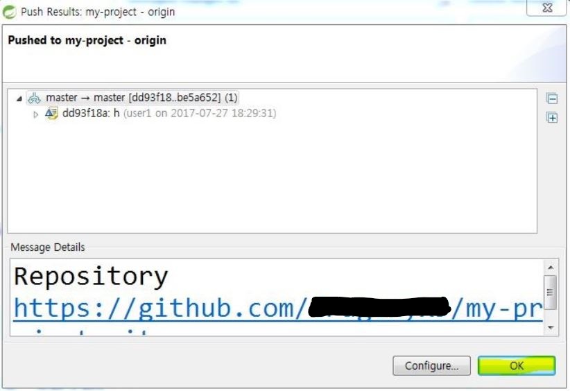 push Results 화면에서 [OK]버튼 클릭