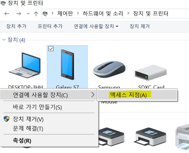 연결에 사용할 장치>액세스 지점 항목을 선택한다.