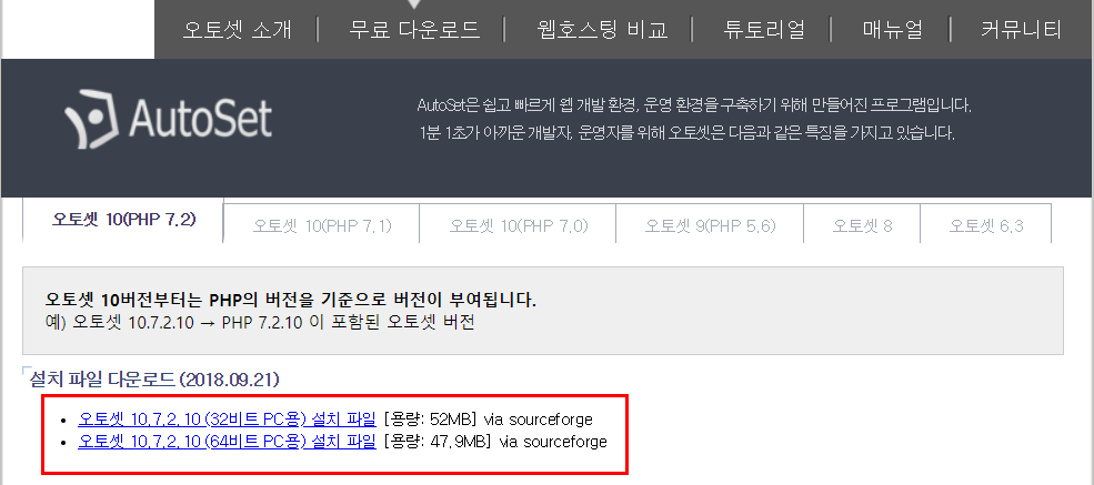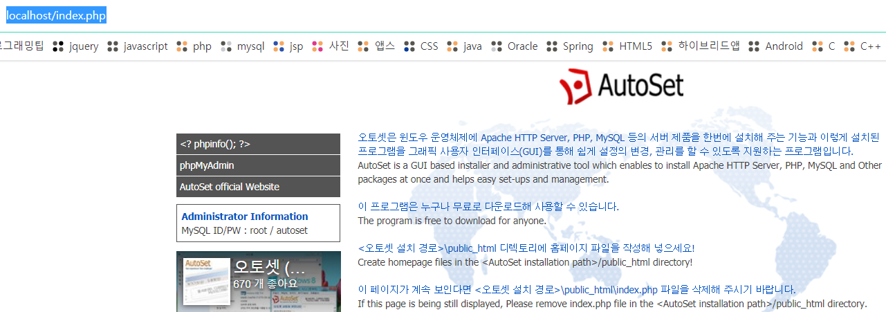 Autoset 사이트 방문 http://autoset.net/xe/