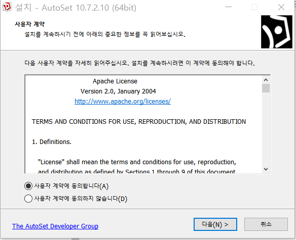 사용자 계약에 동의하고 [다음] 클릭