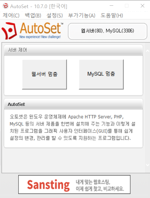 웹서버와 MySQL의 동작을 제어할 수 있는