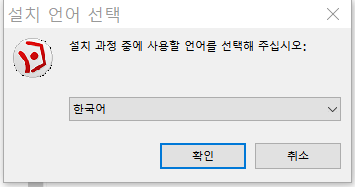 다운로드 받은 파일을 클릭하면 기본 언어가 한국어로 되었다. [확인]을 클릭