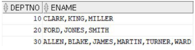 select deptno, listagg(ename,',') within group (order by deptno) ename