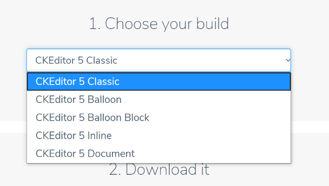 1. 아래와 같이 CKEditor5의 종류를 선택할 수 있다. CKEditor5 Classic를 선택한다.