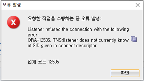 오라클 ORA-12505 오류 발생 해결하기 본문