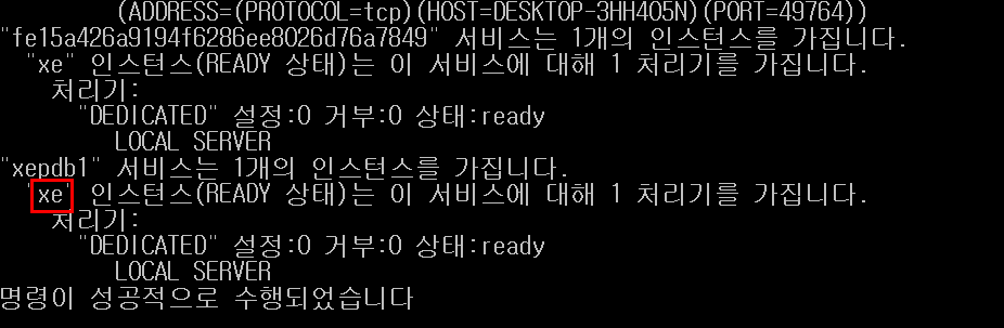 접속한 ORACLE의 SID는아래 붉은 사각형에 표시한 XE이다