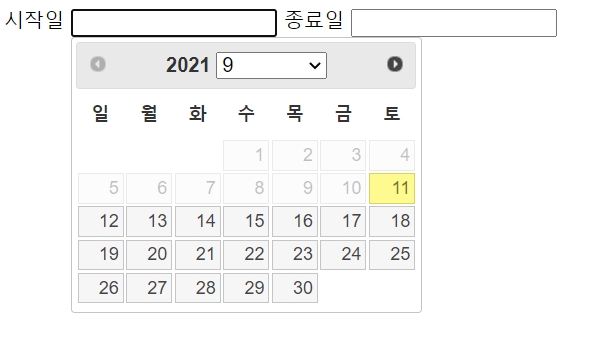 jQueryUI의 datepicker를 이용한 시작일, 종료일 지정하기 본문