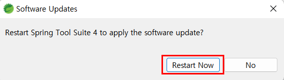 설치가 완료되면 STS를 재구동한다. [Restart Now] 버튼을 클릭한다.