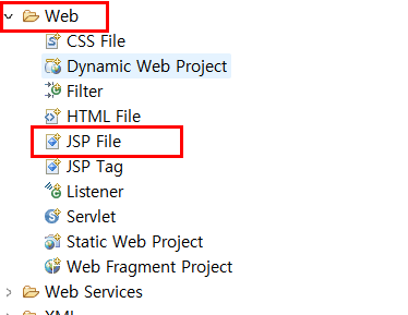 STS 재구동 이후에 파일을 생성할 때 Web 항목이 보여지고