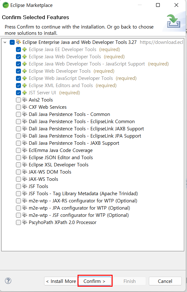 Eclipse Enterprise Java and Web Developer Tools3.27 를 설치한다.